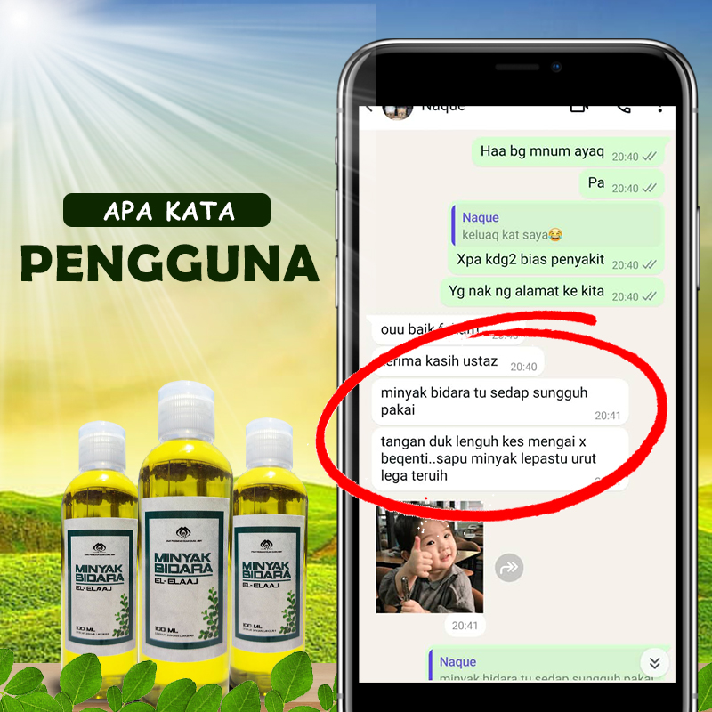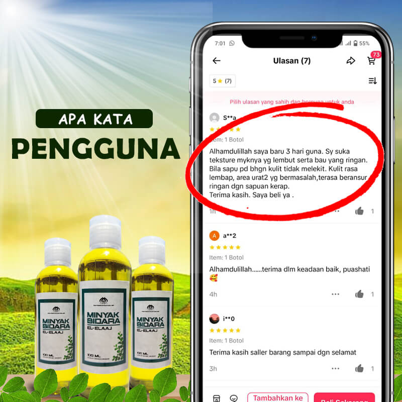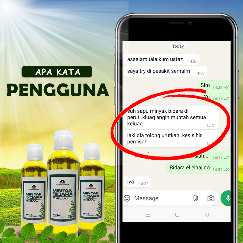 Alhamdulillah saya dah beli minyak bidara El Ellah nak bagi ayah saya guna, bagus untuk yang ada angin berlebihan, lepas ni boleh repeat lagi.